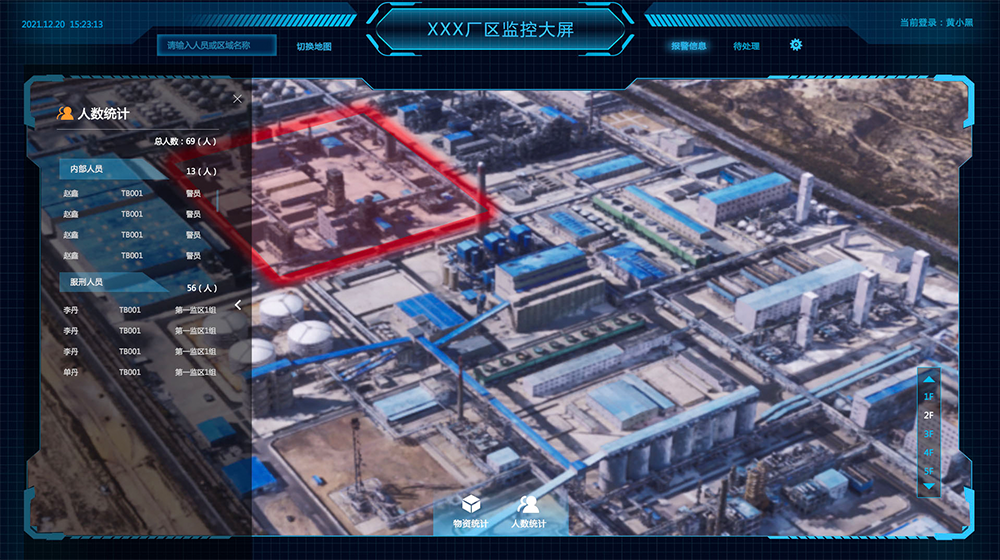 通过预先在某空间安装好定位基站,基站与标签相互通信以TOF(飞行时间)、TDOA(到达时间差)、AOA(到达角)的定位算法解算标签位置,最终将装配了标签的人员、车辆、物资位置信息投射到显示终端。