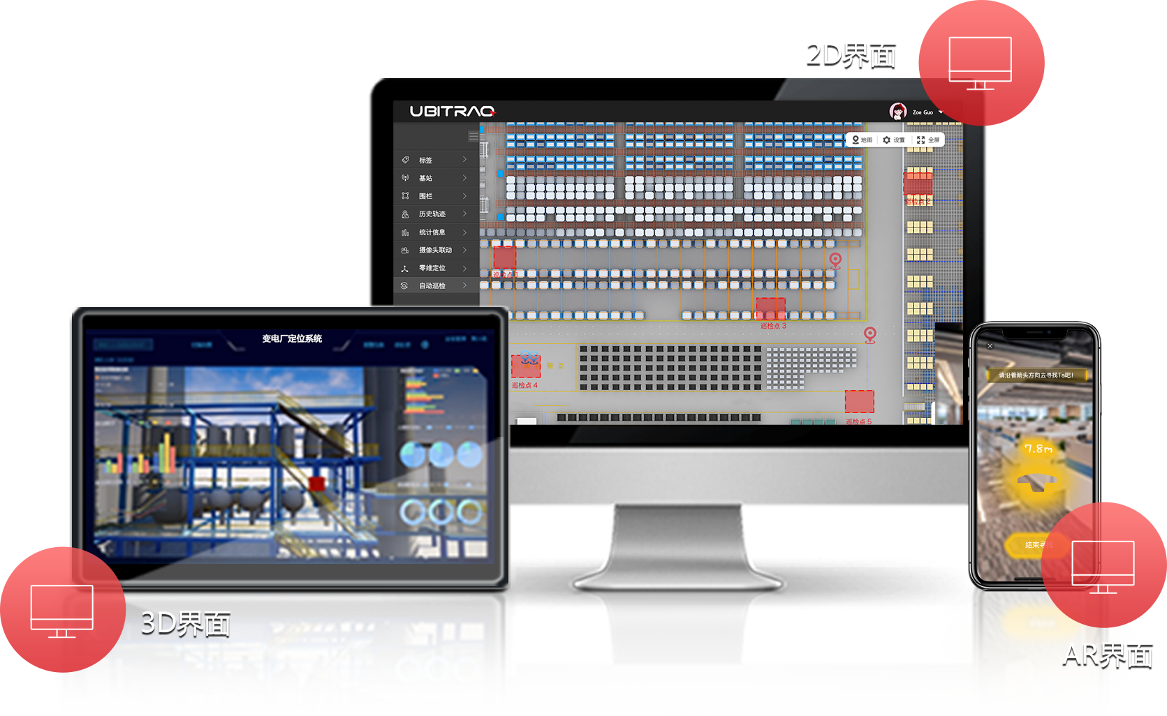 自研高精度室内外定位系统,基于UWB(超宽带)技术实现厘米级室内定位。